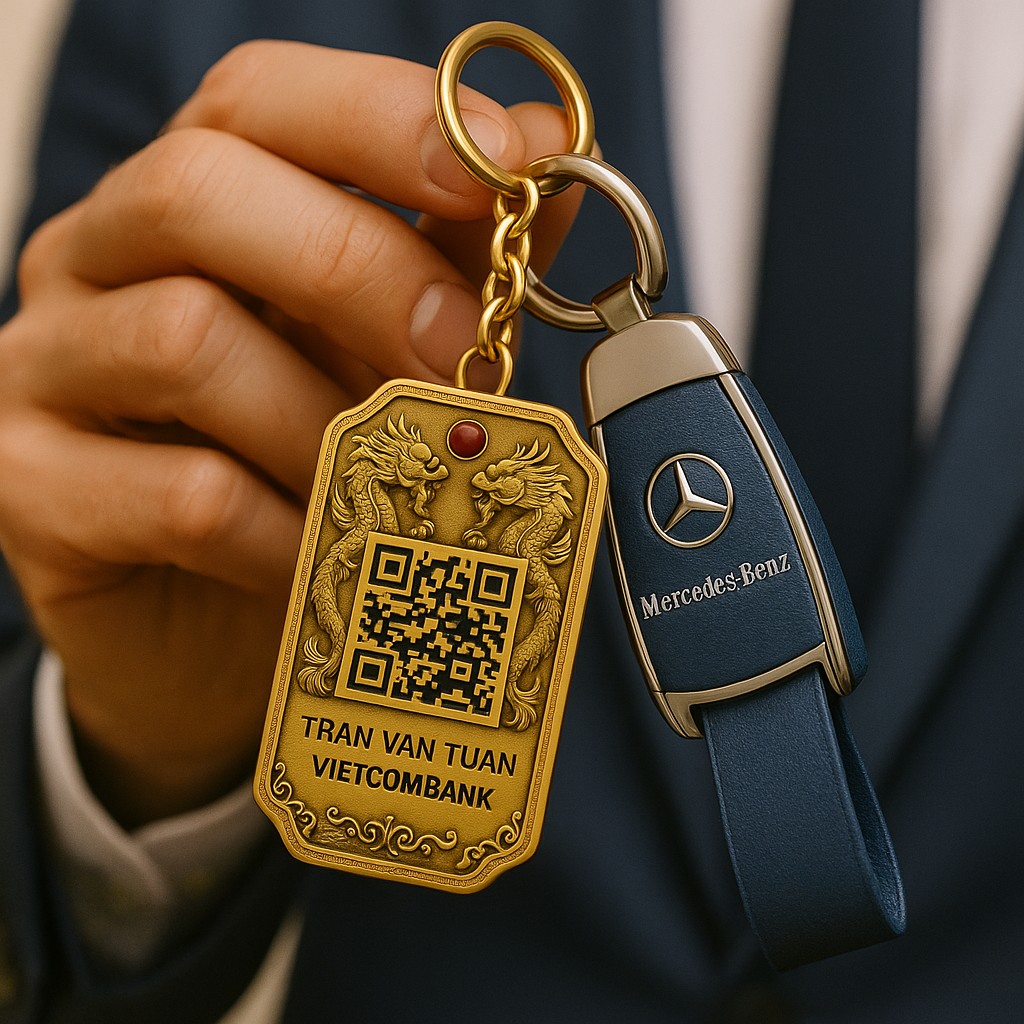 Khắc mã QR ngân hàng cá nhân trực tiếp trên mặt dây chuyền.